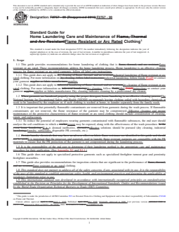 1.1.1 This guide does not apply to dry cleaning of flame, thermal, and arc resistantindustrial laundering of flame resistant or arc