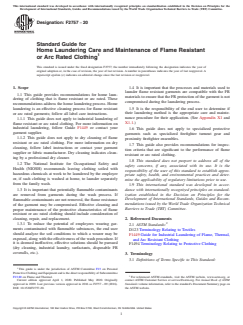 1.1.2 This guide does not apply to industrial laundering of flame, thermal, and arc resistantdry cleaning of flame resistant or arc