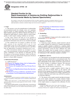 ASTM D7784-20 - Standard Practice for the Rapid Assessment of Gamma-ray Emitting Radionuclides in Environmental Media by Gamma Spectrometry
