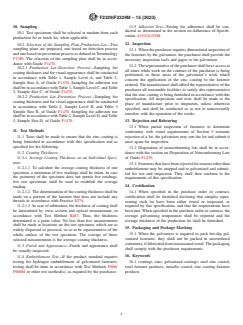 The scope of ASTM F2329/F2329M does not cover nails or rivets and is specifically designed for fasteners that are centrifuged or otherwise handled to remove excess zinc after galvanizing. The standard specifies requirements for surface preparation, zinc composition, coating characteristics, sampling, inspection, and repair methods, facilitating global trade and compliance with WTO Technical Barriers to Trade (TBT) principles.
