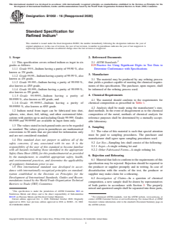 Key SEO terms: ASTM B1002-16(2020), refined indium specification, indium purity grades, indium ingot standard, high-purity indium, ASTM indium standard, indium applications, metallic impurities indium, nonferrous metals standards, ASTM International.