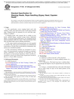 Adhering to ASTM F1106-87(2023) ensures that warping heads are safe, reliable, and compatible with a broad spectrum of marine deck equipment, supporting efficient mooring, winching, and capstan operations. The specification provides clarity for buyers and manufacturers, streamlines procurement processes, and contributes to the overall safety and performance of vessel deck machinery systems.