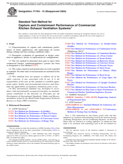 ASTM F1704-12(2022) - Standard Test Method for Capture and Containment Performance of Commercial Kitchen Exhaust Ventilation Systems