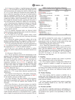 ASTM D4014-23 is a technical specification published by ASTM International. Its full title is "Standard Specification for Plain and Steel-Laminated Elastomeric Bearings for Bridges". This standard covers: ABSTRACT This specification covers bearings, which consist of all elastomer or of alternate laminates of elastomer and steel, when the function of the bearings is to transfer loads or accommodate relative movement between a bridge superstructure and its supporting structure, or both. The bearings are furnished in four types as follows: plain elastomeric bearing pad; plain elastomeric sandwich bearing; steel-laminated elastomeric bearing; and steel-laminated elastomeric bearing with external load plate. The elastomer for the manufacture of the bearing is furnished in two types: Type CR and Type NR. The elastomer for the manufacture of the bearing is furnished in four grades of low-temperature properties: Grade 0; Grade 2; Grade 3; and Grade 5. The elastomeric compound used in the construction of a bearing shall contain only either natural rubber or chloroprene rubber as the raw polymer. Internal steel laminates shall be of rolled mild steel. Plain bearing pads shall be molded individually, or cut from previously molded strips or slabs, or extruded and cut to length. A steel-laminated bearing or a plain sandwich bearing shall be molded as a single unit under pressure and heat. All bonding of elastomer to steel laminates and to external load plates shall be carried out during molding. Bearing compression tests, compression stiffness, visual inspection, quality control properties, shear modulus, ozone resistance, and low-temperature grade tests shall be performed to conform to the specified requirements. SCOPE 1.1 This specification covers bearings which consist of all elastomer or of alternate laminates of elastomer and steel, when the function of the bearings is to transfer loads or accommodate relative movement between a bridge superstructure and its supporting structure, or both. 1.2 The values stated in SI units are to be regarded as the standard. Note 1: The words “elastomer” or “elastomeric” will be used interchangeably with the word “rubber” in this specification. 1.3 The following safety hazards caveat pertains only to the test methods portion, Section 8, of this specification: This standard does not purport to address all of the safety concerns, if any, associated with its use. It is the responsibility of the user of this standard to establish appropriate safety, health, and environmental practices and determine the applicability of regulatory limitations prior to use. 1.4 This international standard was developed in accordance with internationally recognized principles on standardization established in the Decision on Principles for the Development of International Standards, Guides and Recommendations issued by the World Trade Organization Technical Barriers to Trade (TBT) Committee.