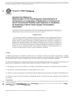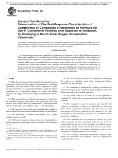 ASTM F1550-22: Standard Test Method for Determination of Fire-Test-Response Characteristics of Components or Composites of Mattresses or Furniture for Use in Correctional Facilities after Exposure to Vandalism, by Employing a Bench Scale Oxygen Consumption Calorimeter is a specialized fire performance test developed by ASTM International. This standard provides a controlled laboratory method for evaluating the fire-test-response characteristics-such as ignitability and heat release rate-of mattress or furniture composites intended for correctional facilities, after simulated vandalism exposes inner filling materials. Emphasis is placed on replicating realistic post-vandalism scenarios that are common in correctional occupancies.
