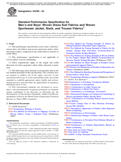 ASTM D3780-22 - Standard Performance Specification for Men's and Boys' Woven Dress Suit Fabrics and Woven Sportswear Jacket, Slack, and Trouser Fabrics