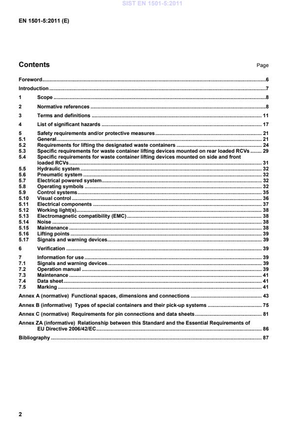 Relationship between this Standard and the Essential Requirements of EU Directive 2006/42/EC . 86Bibliography . 87 SIST EN 1501-5:2011