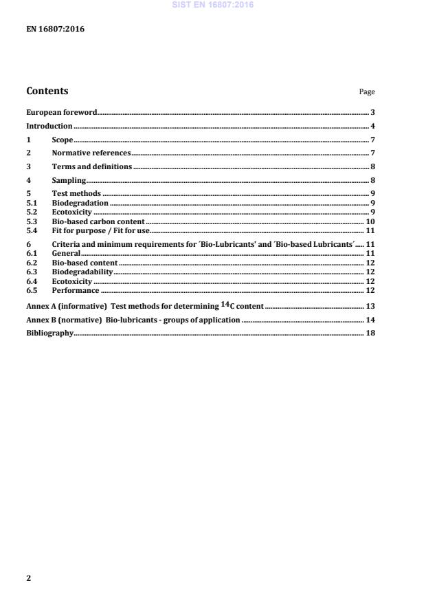 “Biomass-to-Liquid” (BtL) Bio-basedb Non-renewable Non biodegradable White oil for foodgrade lubricants Biocompatible a According to OECD 301[5]. b According to EN 16575. NOTE In addition, consideration of soil dwelling organisms could be reflected in a future edition. Even if in a more general approach “environmentally compatible lubricants” can be seen under additional aspects, up to a comprehensive Life Cycle Assessment (LCA), this European Standard focuses on the term bio-lubricant, which comprises requirements regarding biodegradability, aquatic toxicity, content of biomass and performance. SIST EN 16807:2016