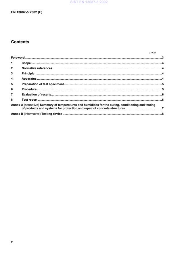 EN 13687-5:2002 is a standard published by the European Committee for Standardization (CEN). Its full title is "Products and systems for the protection and repair of concrete structures - Test methods - Determination of thermal compatibility - Part 5: Resistance to temperature shock". This standard covers: This European Standard is the fifth of a series of five parts to assess the thermal compatibility of products and systems for the repair and protection of concrete. This part is relevant only to surface protection systems, and specifies a method for determining the resistance of surface protection systems to high temperature shock. This test method is also suitable for testing the resistance of surface protection systems against hot chemicals.