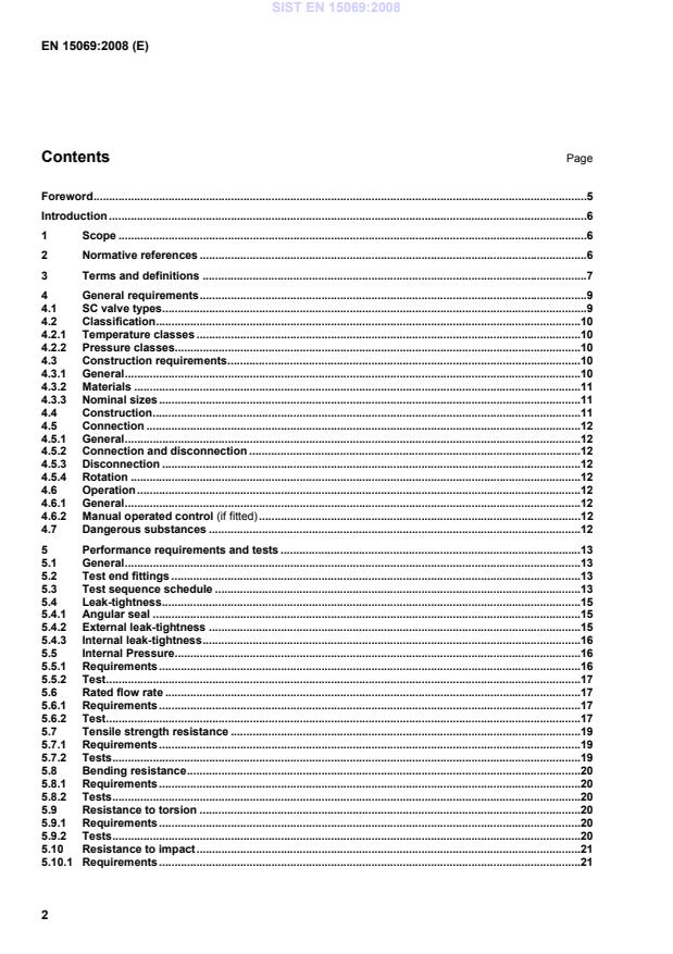 EN 15069:2008 (CEN) specifies requirements and test methods for safety gas connection valves (SC valves) used on metal hose assemblies for connecting domestic appliances to the fixed gas supply. The standard covers valves for use with 2nd and 3rd family gases at pressures up to and including 0.5 bar, and addresses both movable and fixed domestic appliances. EN 15069 defines construction, performance, testing and conformity assessment necessary to ensure safe, reliable gas connections in household installations.