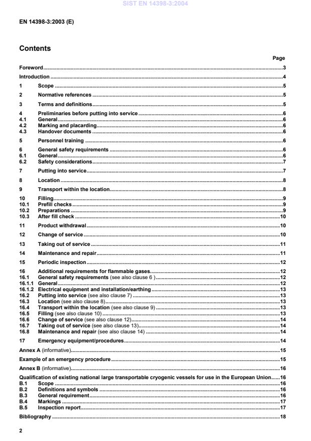 EN 14398-3:2003 is a standard published by the European Committee for Standardization (CEN). Its full title is "Cryogenic vessels - Large transportable non-vacuum insulated vessels - Part 3: Operational requirements". This standard covers: 1.1 This European Standard specifies operational requirements for large transportable non vacuum insulated cryogenic vessels of more than 1000 l volume. 1.2 This European Standard applies to vessels designed for cryogenic fluids specified in prEN 14398-1.