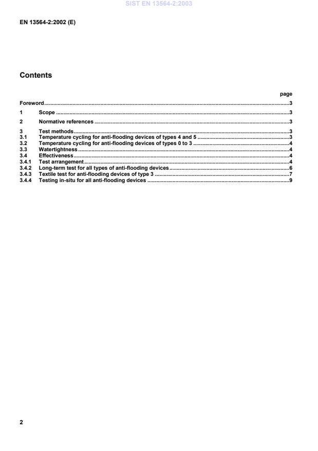 EN 13564-2:2002 is a standard published by the European Committee for Standardization (CEN). Its full title is "Anti-flooding devices for buildings - Part 2: Test methods". This standard covers: This part of this European Standard specifies test methods for anti-flooding devices for buildings according to prEN XXXXX-1.
