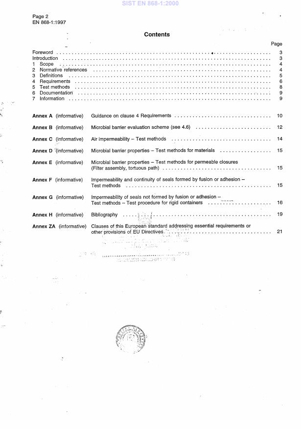 EN 868-1:1997 is a standard published by the European Committee for Standardization (CEN). Its full title is "Packaging materials and systems for medical devices which are to be sterilized - Part 1: General requirements and test methods". This standard covers: 1.1 This European Standard specifies the requirements and test methods for packaging materials and systems: - which are used for packaging of medical devices which are to be terminally sterilized; and - which are intended to maintain sterility of the device. NOTE 1: This standard has been developed as a means to show compliance with relevant European Directives. If health care facilities e. g. hospitals do not place medical devices on the market, they are not covered by these Directives. Nevertheless, such health care facilities can fulfil the same requirements as manufacturers but can use alternative means to demonstrate conformity to this standard. NOTE 2: Compliance with other Parts of prEN 868 series can be used to demonstrate compliance with one or more of the requirements of this standard. 1.2 This standard does not apply to packaging materials and systems used for packaging aseptically manufactured products. 1.3 This European Standard does not describe a quality assurance system for control of all stages of manufacture. NOTE: Attention is drawn to the standards for quality systems (see e. g. EN ISO 9001, EN ISO 9002, EN 46001 or EN 46002) which control all stages of manufacture including the sterilization process. It is not a requirement of this standard to have a complete quality system during manufacture but certain elements of such a system can be applied.