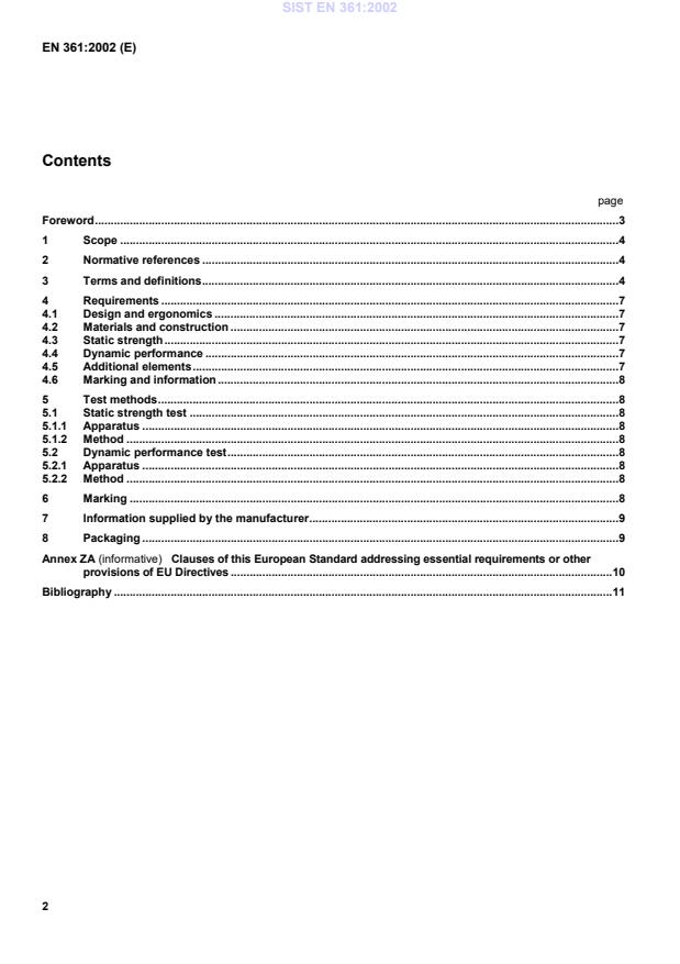 Clauses of this European Standard addressing essential requirements or otherprovisions of EU Directives.10Bibliography.11SIST EN 361:2002