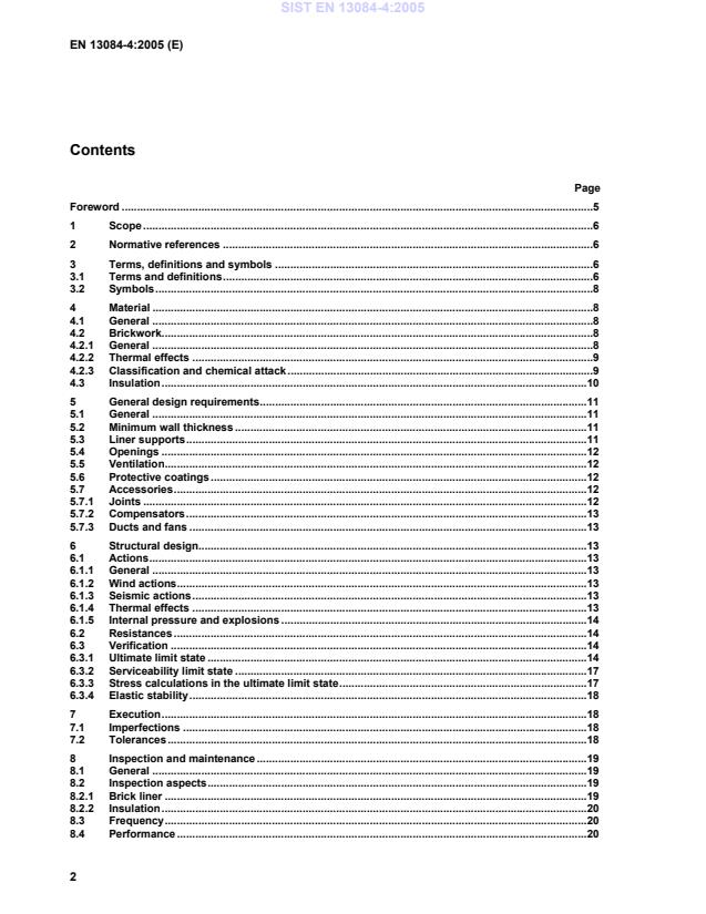 Keywords: EN 13084-4:2005, free-standing chimneys, brick liners, design and execution, CEN, industrial chimneys, liner support, insulation, structural design, chimney inspection.