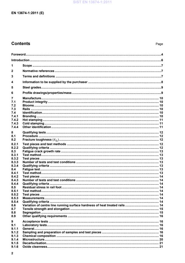 process whereby blooms are held for a period of time at an elevated temperature for diminishing the hydrogen content NOTE 1 For maximum efficiency this is as near to (but below) the pearlite to austenite transformation temperature as is practically possible. NOTE 2 This process is sometimes referred to as sub critical diffusion annealing. 3.8 qualifying test special test and criteria which are relevant to some aspects of the service performance of rails. Acceptance tests also form part of the qualifying tests 3.9 acceptance test test carried out as part of the process and product control system, normally on a heat, sequence or tonnage basis 3.10 rail running surface curved surface of the rail head. Area between both gauge corners (transition points of the head inclination and the first head radius) 4 Information to be supplied by the purchaser The purchaser shall provide the supplier with the following information at the time of tender or order: a) rail profile (see Annex A); b) steel grade (see Clause 5); c) profiles class, ‘X’ or ‘Y’ (see 9.2.1); d) straightness class ‘A’ or ‘B’ of rail as specified in 9.2.2; e) length(s) of rail (see Table 9); SIST EN 13674-1:2011