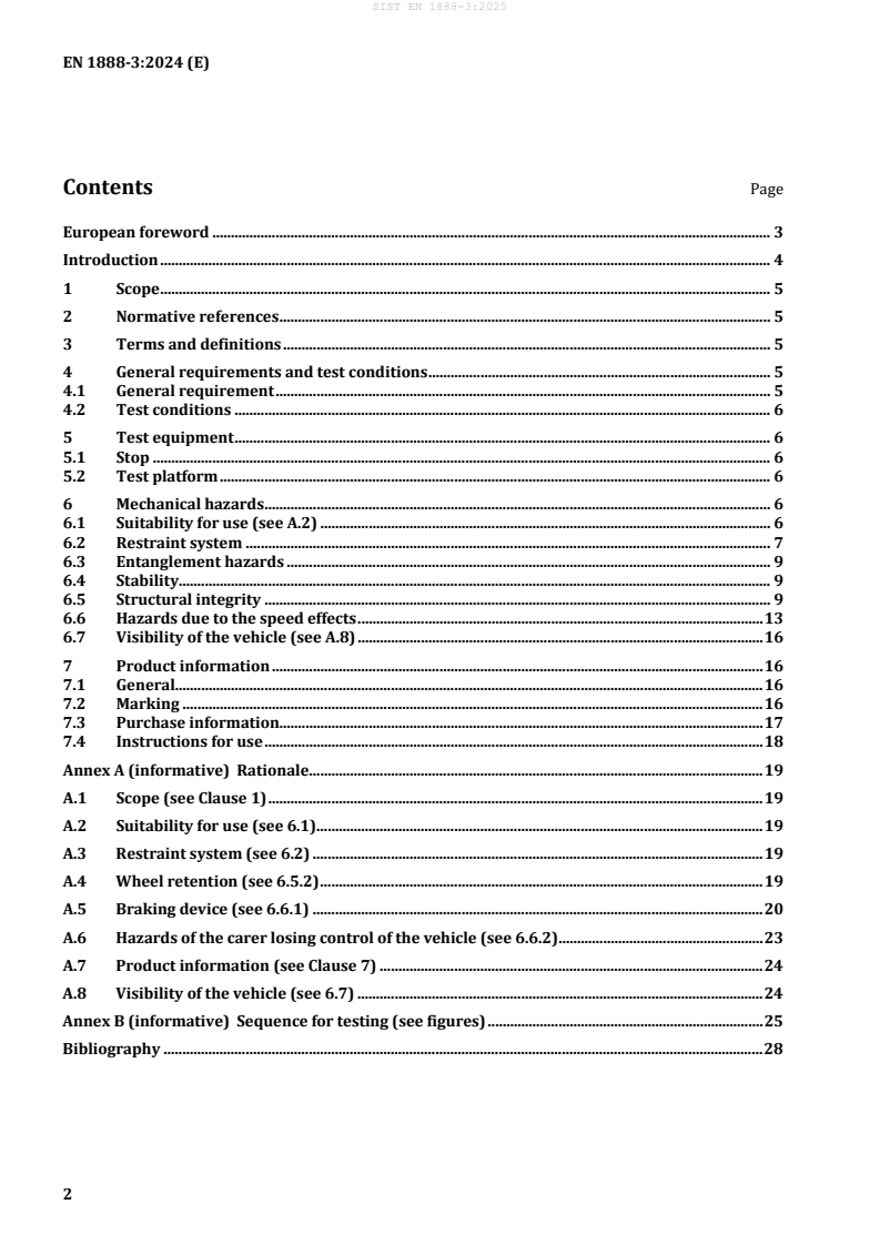 Keywords: EN 1888-3:2024, pushchairs intended for leisure sport activities, jogging stroller safety, wheeled child conveyances, CEN standard, restraint system, stability testing, structural integrity.