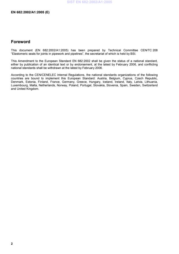 This amendment A1 modifies the European Standard EN 682:2002; it was approved by CEN on 14 July 2005.