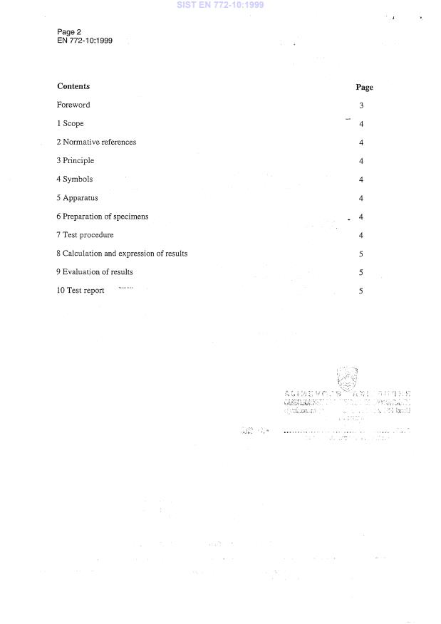 For compliance and laboratory application, consult the full EN 772-10:1999 text and any national transpositions or updates from CEN.