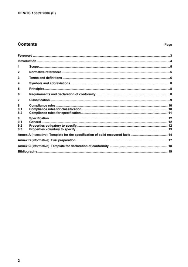 CEN/TS 15359:2006 is a technical specification published by the European Committee for Standardization (CEN). Its full title is "Solid recovered fuels - Specifications and classes". This standard covers: This Technical Specification specifies a classification system for SRFs and a template for the specification of their properties. SRFs are produced from non-hazardous waste. NOTE 1 Solid bio-fuels excluded from the Waste Incineration Directive (2000/76/EC) are not included in the scope of this Technical Specification. These are dealt with in CEN/TC 335 "Solid biofuels". Waste wood from demolition of buildings and civil engineering installations is, however, included in the scope. NOTE 2 Untreated municipal solid waste is not included in the scope of this Technical Specification.