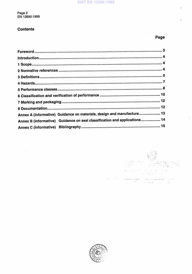 (EN 12690:1999 is concerned with performance outcomes and risk control; it does not mandate a single type of seal or proprietary solution.)