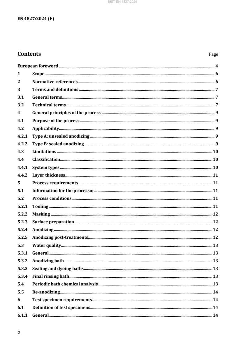 EN 4827:2024 is a standard published by the European Committee for Standardization (CEN). Its full title is "Aerospace series - Hexavalent chromium free anodizing of aluminium and aluminium alloys". This standard covers: This document specifies the requirements for hexavalent chromium free anodizing of aluminium and aluminium alloys for corrosion protection, bonding and painting. This document does not apply to hard anodizing and plasma electrolytic anodizing (micro-arc oxidation). The purpose of this document is to give design, quality and manufacturing requirements. It does not give complete in-house process instructions; these are given in the processor's detailed process instructions.
