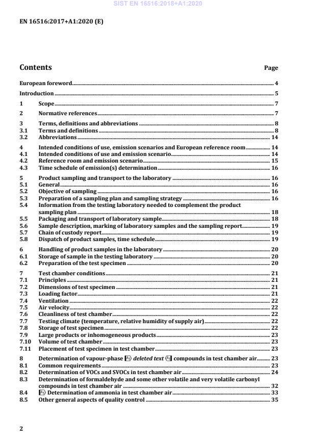 EN 16516:2017+A1:2020 is a standard published by the European Committee for Standardization (CEN). Its full title is "Construction products: Assessment of release of dangerous substances - Determination of emissions into indoor air". This standard covers: This European Standard specifies a horizontal reference method for the determination of emissions of regulated dangerous substances from construction products into indoor air. This method is applicable to volatile organic compounds, semi-volatile organic compounds, and very volatile aldehydes. It is based on the use of a test chamber and subsequent analysis of the organic compounds by GC-MS or HPLC. NOTE 1 Supplemental information is given on indirect test methods (see Annex B) and on measuring very volatile organic compounds (see Annex C). NOTE 2 This European Standard describes the overall procedure and makes use of existing standards mainly by normative reference, complemented when necessary with additional or modified normative requirements.