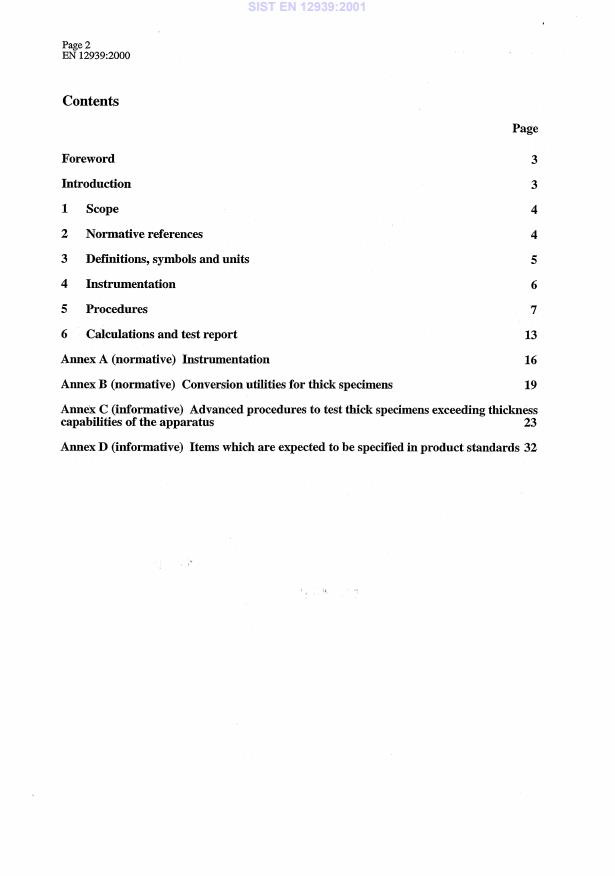 EN 12939:2000 is a standard published by the European Committee for Standardization (CEN). Its full title is "Thermal performance of building materials and products - Determination of thermal resistance by means of guarded hot plate and heat flow meter methods - Thick products of high and medium thermal resistance". This standard covers: This standard gives the procedures to determine the thermal resistance of products the thicknesses of which exceed the maximum thickness for guarded hot plate or heat flow meter apparatus. In any case most of the procedures described in this standard require apparatus that allows tests on specimens up to 100 mm thick. This standard gives guidelines to assess the relevance of the thickness effect, i.e. to establish whether the thermal resistance of a thick product can or cannot be calculated as the sum of the thermal resistances of slices cut from the product, these guidelines complement the indications given in ISO 8302:1991 on the guarded hot plate apparatus.This standard describes testing conditions which prevent the onset of convection. which could take place in some products under the considered temperature differences and thicknesses.