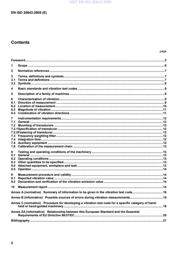 SIST EN ISO 20643:2005 문서는 핸드헬드 및 핸드 가이드 기계의 진동 방출 평가 원칙에 대한 기준을 제공합니다. 이 표준은 핸드트랜스미터 진동 방출의 측정을 위한 진동 시험 코드 개발의 기초를 제공하며, 유형 시험 중의 주파수 가중치 평균 제곱(r.m.s.) 가속도를 사용한 측정을 명시합니다. 또한, 진동 시험 코드가 존재하지 않는 기계에 대해서도 방출 값의 결정에 사용할 수 있으며 적절한 시험 설계를 위한 충분한 지침을 포함하고 있습니다. 이 표준의 강점은 측정 절차를 정의하여 통제 가능하고 재현 가능한 결과를 제공하는 진동 시험 코드 개발을 지원한다는 것입니다. 이는 실제 작업 조건 하에서 기계와 손 사이의 접촉 표면에서 측정된 진동 값과 최대한 일치하도록 측정의 불확실성을 정량화하여 제공할 수 있습니다. 이 문서는 핸드헬드 전동 공구(예: 망치, 샌더)와 핸드 가이드 전동 기계(예: 잔디 깎는 기계, 단축 트랙터, 진동 롤러) 등 다양한 전동 기계에 적용될 수 있으며, 전기, 유압, 공압, 내연 기관 등 모든 동력원에 적합합니다. 그러나 이 표준은 작업물 통해 사용자에게 진동이 전달되는 고정 기계에는 적용되지 않으며, 기계 내에서 조작자의 위치가 있는 경우 조향 휠이나 제어 레버에서 전달되는 진동에 대해서도 적용되지 않습니다. 또한, 이 문서는 손-기계 인터페이스에서 세 가지 직교 방향으로 측정된 변위 진동에 국한됩니다. 5 Hz보다 낮은 빈도로 단일 및 반복 충격을 생성하는 기계에 대해서는 신중하게 적용해야 하며, 이러한 기계의 경우 주파수 가중치 평균 제곱 가속도 값이 건강 리스크와 관련이 있는지 여부가 알려져 있지 않기 때문에 추가적인 측정이 필요할 수 있습니다. 따라서 SIST EN ISO 20643:2005는 핸드헬드 및 핸드 가이드 기계의 진동 방출을 평가하는 데 있어 중요한 기준을 제공하며, 이는 기계의 안전성을 높이고 사용자 건강을 보호하는 데 기여할 수 있습니다.