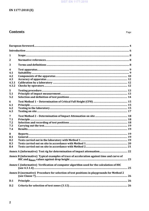 Procedure for selection of test positions in playgrounds for Method 2 (see Clause 7) . 26 D.1 Principle . 26 D.2 Criteria for selection of test zones (3.12) . 26 SIST EN 1177:2018