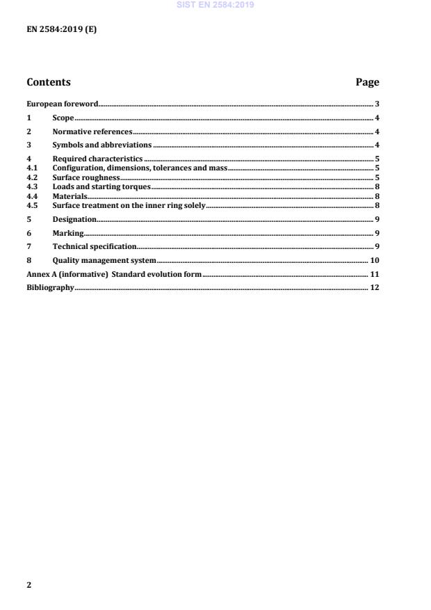 EN 2584:2019 is a standard published by the European Committee for Standardization (CEN). Its full title is "Aerospace series - Bearings, spherical plain in corrosion resisting steel with self-lubricating liner - Narrow series - Elevated load at ambient temperature - Dimensions and loads". This standard covers: This document specifies the characteristics of spherical plain bearings in corrosion resisting steel, with self lubricating liner, narrow series, for elevated load. at ambient temperature, with or without swaging groove, intended for use in the fixed or moving parts of the aircraft structure and control mechanisms. They shall be used in the temperature range −55 °C to +163 °C.