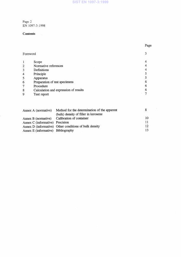 EN 1097-3:1998 is a standard published by the European Committee for Standardization (CEN). Its full title is "Tests for mechanical and physical properties of aggregates - Part 3: Determination of loose bulk density and voids". This standard covers: This European Standard specifies the test procedure for the determination of the loose bulk density of dry aggregate and the calculation of the voids. The test is applicable to natural and artificial aggregates up to a maximum size of 63 mm. A method for the determination of the apparent (bulk) density of filler in kerosene is given in annex A.