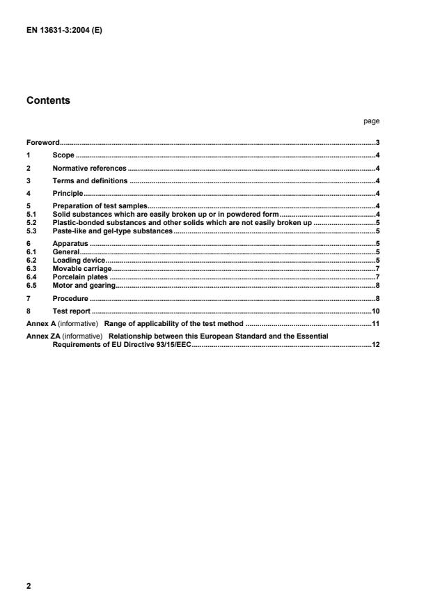 EN 13857-1:2003, Explosives for civil uses — Part 1:Terminology EN 60672-3:1997, Ceramic and glass insulating materials — Part 3: Specifications for individual materials (IEC 60672-3:1997) EN ISO/IEC 17025, General requirements for the competence of testing and calibration laboratories (ISO/IEC 17025:1999) 3 Terms and definitions For the purposes of this document, the terms and definitions given in EN 13857-1:2003 and the following apply. 3.1 reaction occurrence of report, crackling, sparking and/or flame 3.2 sensitiveness to friction lowest load at which a reaction is obtained from at least one out of six trials 4 Principle A small amount of the explosive is placed on a