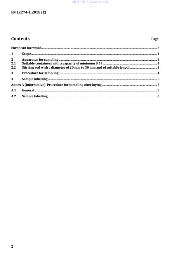 Page European foreword . 3 1 Scope . 4 2 Apparatus for sampling . 4 2.1 Suitable containers with a capacity of minimum 0,5 l . 4 2.2 Stirring rod with a diameter of 20 mm to 30 mm and of suitable length . 4 3 Procedure for sampling . 4 4 Sample labelling . 5 Annex A (informative)