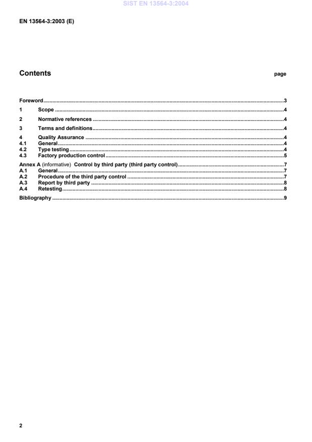 Control by third party (third party control).7A.1General.7A.2Procedure of the third party control.7A.3Report by third party.8A.4Retesting.8Bibliography.9SIST EN 13564-3:2004