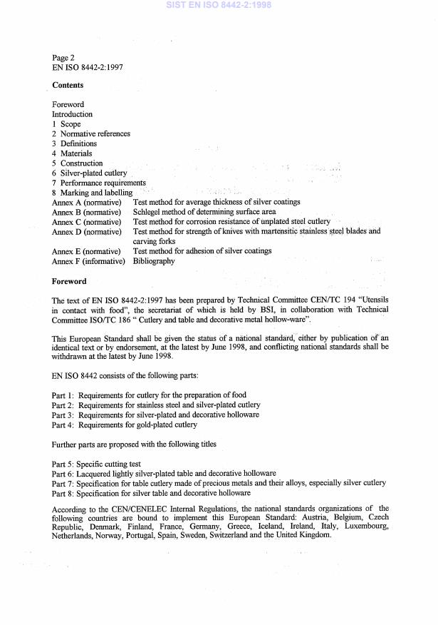 Keywords: EN ISO 8442-2:1997, cutlery standard, gold‑plated cutlery, stainless steel cutlery, silver‑plated cutlery, food contact materials, test methods, performance requirements.