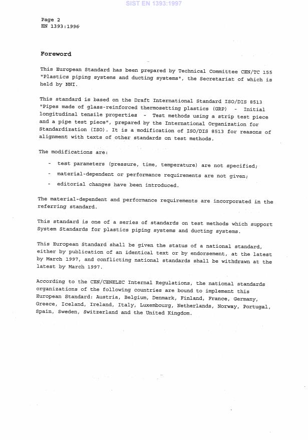 - EN 1393:1996 should be used alongside other CEN plastics piping system standards and GRP product standards that cover dimensional, structural and pressure testing. Consult current CEN listings for the latest related standards and any superseding revisions.