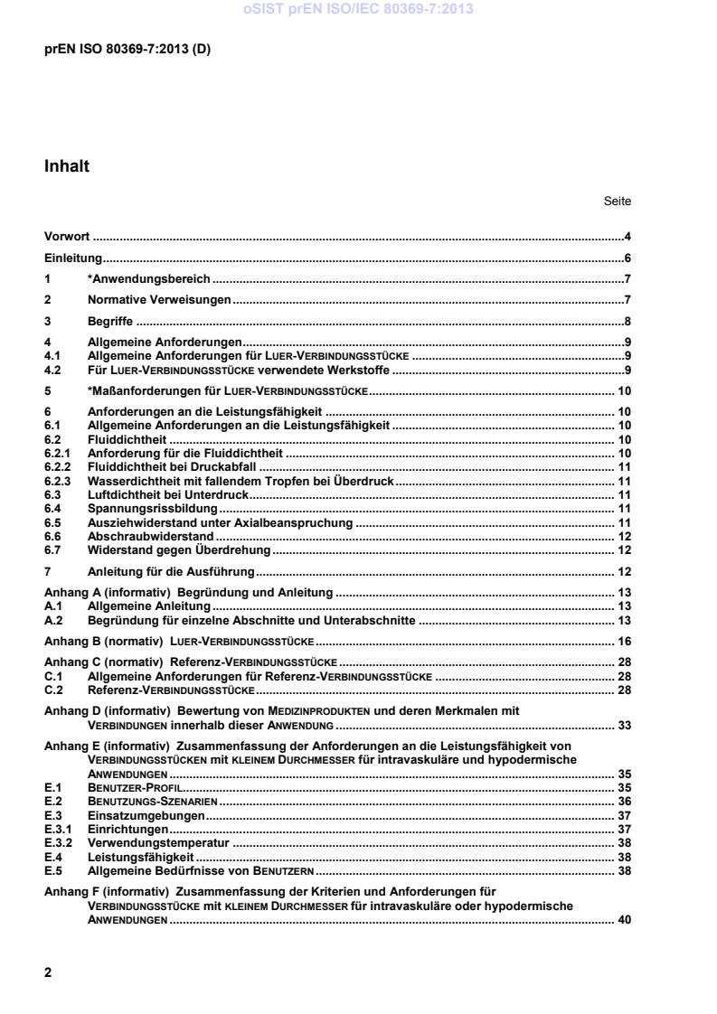 Der vorliegende Teil der ISO 80369 legt die Anforderungen für VERBINDUNGSSTÜCKE mit KLEINEM DURCH-MESSER für die Verwendung als intravaskuläre VERBINDUNGEN in intravaskulären ANWENDUNGEN oder als hypodermische VERBINDUNGEN in hypodermischen ANWENDUNGEN von MEDIZINPRODUKTEN und ZUBEHÖR-TEILEN fest.