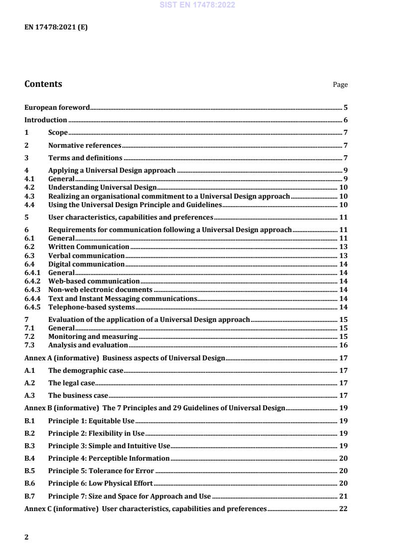 EN 17478:2021 is a standard published by the European Committee for Standardization (CEN). Its full title is "Transport Services - Customer communications for passenger transport services - A Universal Design approach". This standard covers: This document specifies requirements and recommendations for the planning, design, development and provision of user communications related to passenger transport so that these communications can be accessed, understood and used by the widest range of users, including persons with disabilities and older persons. These requirements and recommendations enable an organization to extend its range of users by identifying diverse characteristics, capabilities, and preferences. The requirements specified in this standard are applicable to but not limited to passenger transport service providers including air-, bus, rail-, and waterborne passenger transport services.