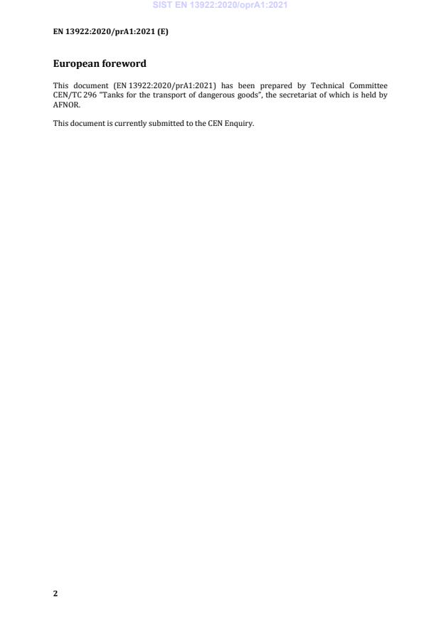 This draft amendment is submitted to CEN members for enquiry. It has been drawn up by the Technical Committee CEN/TC 296.