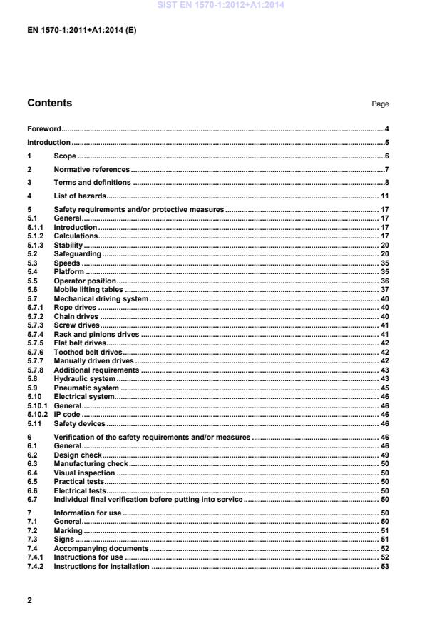 Posture Repetitive activity 5.6.4, 5.6.11, 5.8.11 Visibility 7.1, Table 3, 5.2.2.2.4, 5.2.2.5, 5.2.12.1, 5.5.1, 7.4.2.14 SIST EN 1570-1:2012+A1:2014