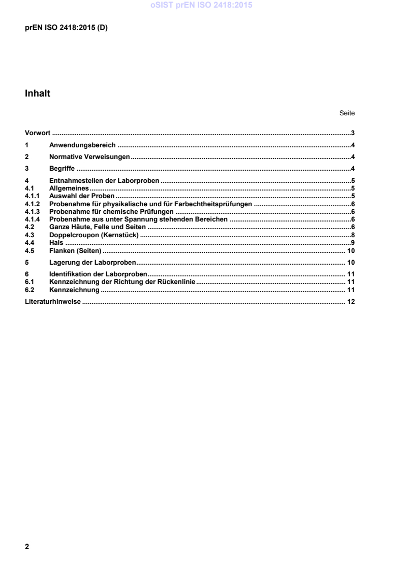 Dieses Dokument (prEN ISO 2418:2015) wurde vom Technischen Komitee „International Union of Leather