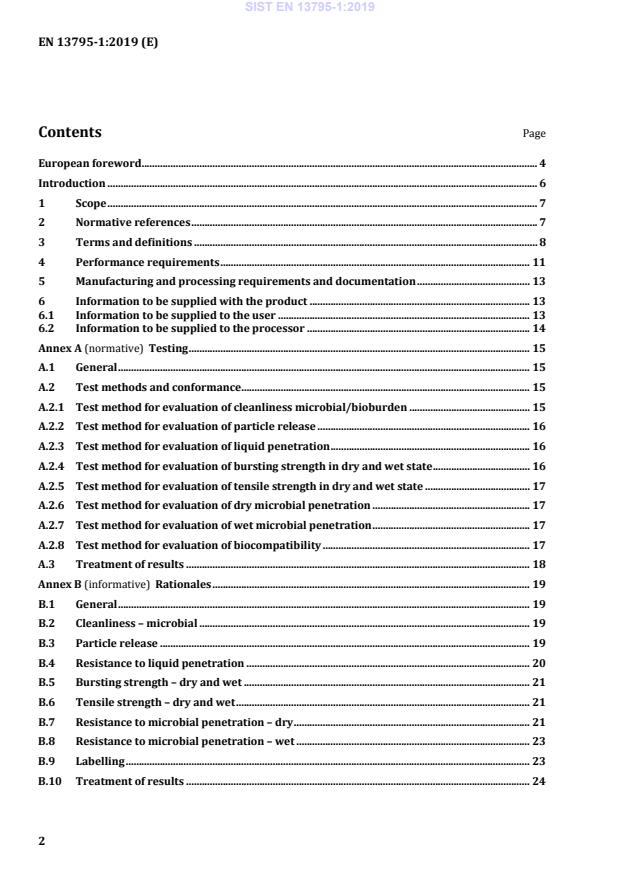 Ta evropski standard določa informacije, ki jih je treba poleg običajnega označevanja medicinskih pripomočkov (glej standarda EN 1041 in EN ISO 15223-1) podati uporabnikom in tretjim strankam, ki izvajajo preverjanje, in sicer v zvezi z zahtevami za proizvodnjo in obdelovanje. Ta evropski standard podaja informacije o lastnostih operacijskih plaščev in pokrival za enkratno in večkratno uporabo, ki se uporabljajo kot medicinski pripomočki za paciente, zdravstveno osebje in opremo ter so namenjeni za preprečevanje prenosa infekcijskih agentov med zdravstvenim osebjem in pacienti med kirurškimi in drugimi invazivnimi postopki. Ta evropski standard določa preskusne metode za ocenjevanje identificiranih lastnosti operacijskih pokrival in plaščev ter čistih oblačil in določa zahteve glede zmogljivosti teh proizvodov.