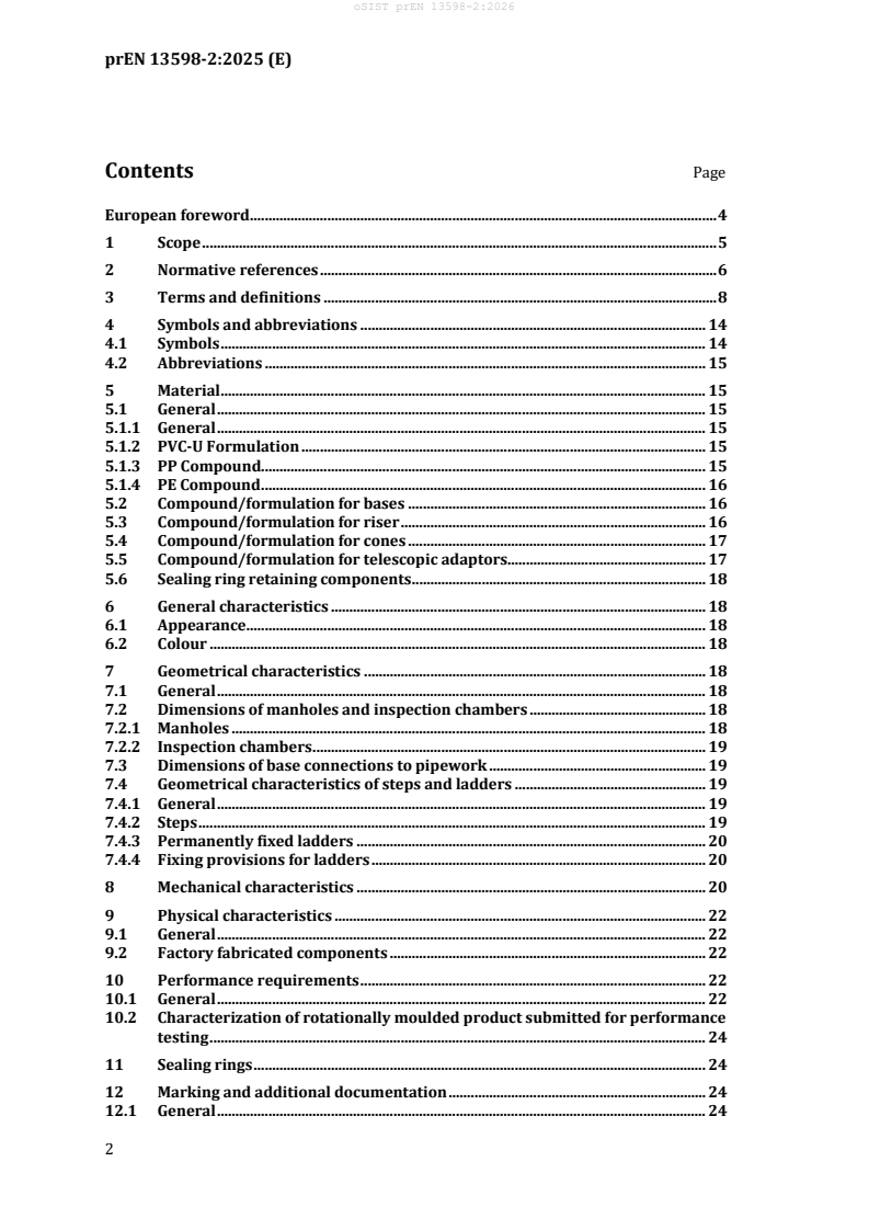 - Scope and exclusions: Covers PVC‑U, PP and PE manholes and inspection chambers; excludes sewage pump chambers, valve chambers and similar products.