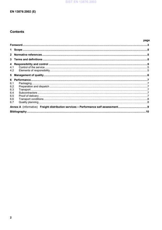 Freight distribution services – Performance self assessment.9Bibliography.10SIST EN 13876:2003