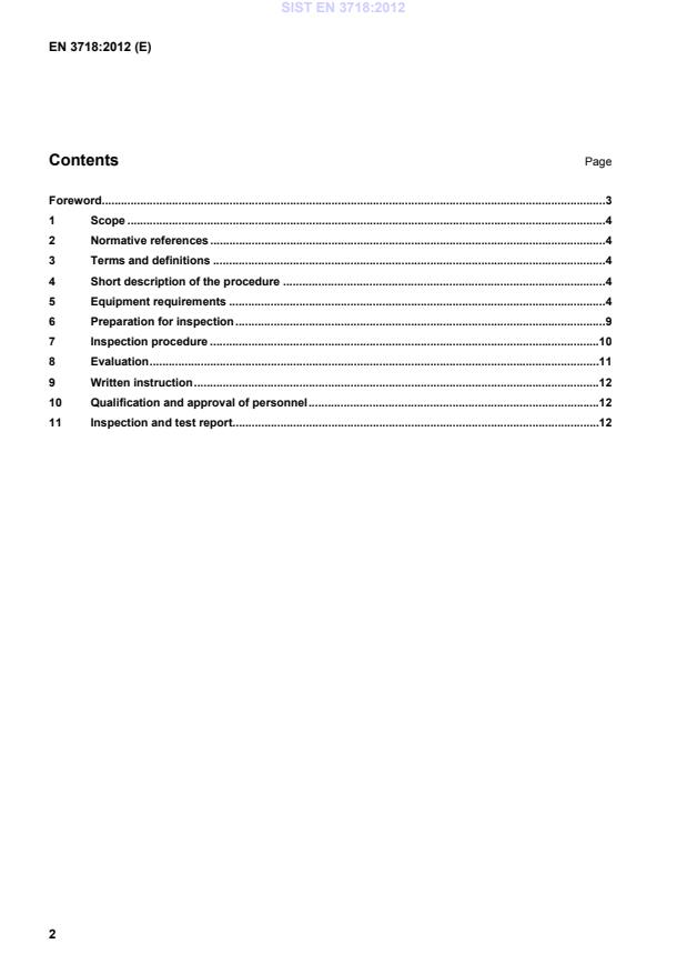 EN 3718:2012 is a standard published by the European Committee for Standardization (CEN). Its full title is "Aerospace series - Test method for metallic materials - Ultrasonic inspection of tubes". This standard covers: This European Standard specifies the requirements for ultrasonic inspection of tubes in metallic materials with an external diameter 5 mm. For other cases, the use of this standard is by agreement between the manufacturer and the purchaser. The purpose of the ultrasonic inspection is the detection of defects within the wall thickness and at the outer and inner surfaces of the tube. The method will detect two dimensional defects in the longitudinal and circumferential directions perpendicular to the tube wall. Where inspection for other types of defects is required, this requirements shall be stated on the order.