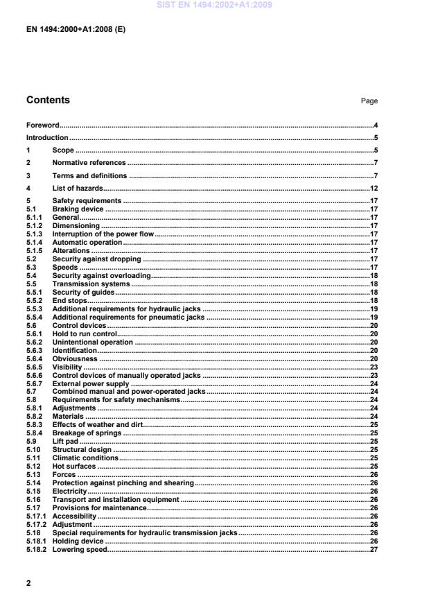 a) designed in accordance with the usual engineering practice and calculation methods, including all failure modes; b) of sound mechanical and electrical construction; c) made of materials with adequate strength and of suitable quality. 1 Scope This European Standard specifies technical safety requirements and measures for mobile or movable jacks (see 3.6) and associated lifting equipment. This European Standard deals with all significant hazards pertinent to mobile or movable jacks and associated lifting equipment when they are used as intended and under the conditions foreseen by the manufacturer. This European Standard specifies the appropriate technical measures to eliminate or reduce risks arising from the significant hazards. This standard applies to lifting equipment (see 3.1) which are mobile or movable and designed to operate under the load, whether operated singulary or in multiples to partially or totally raise and lower loads or vehicles at one or more lifting points (excluding the lifting of persons) where working under the raised load is not permitted unless additional means of securing the load in position are in place. SIST EN 1494:2002+A1:2009