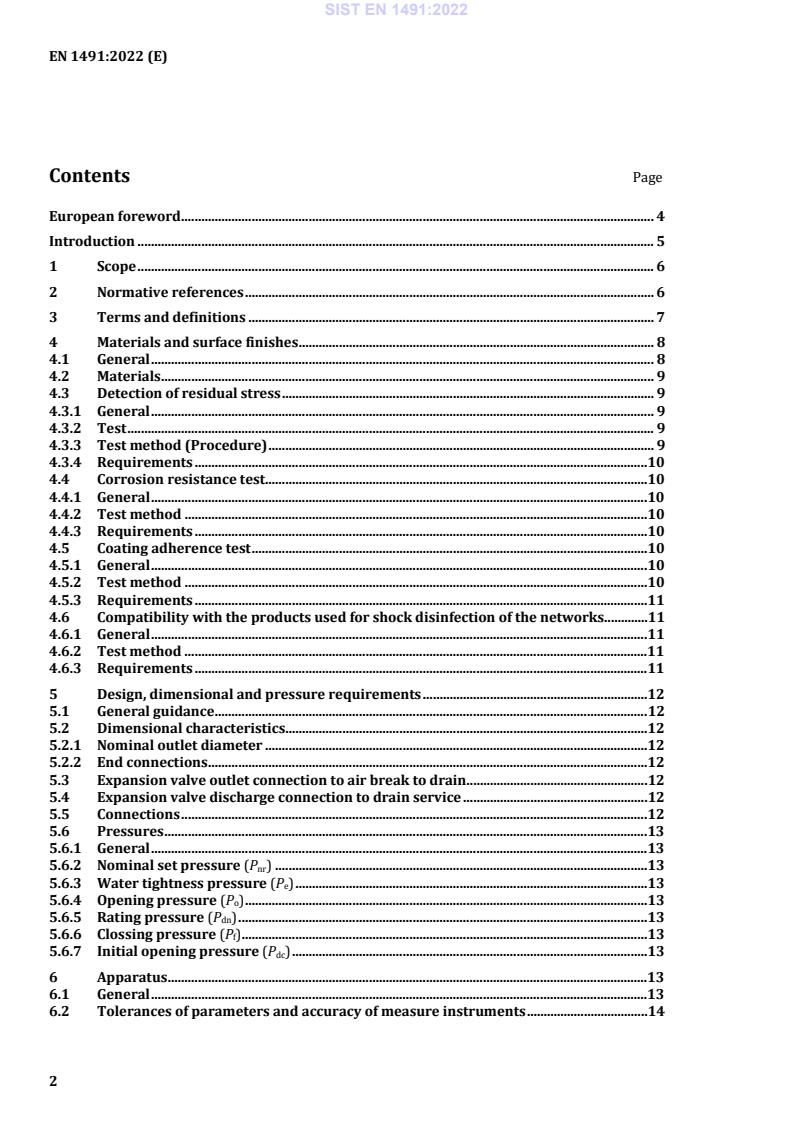 EN 1491:2022 - Building valves - Expansion valves - Tests and requirements is a CEN European Standard that specifies dimensions, materials and performance requirements (including test methods) for expansion valves of nominal sizes DN 15 to DN 32 and working pressures from 0.1 MPa (1 bar) to 1.0 MPa (10 bar). It applies to expansion valves fitted to the cold potable water supply of storage water heaters (maximum distribution temperature 95 °C) and clarifies that these valves limit pressure caused by thermal expansion but do not control temperature or replace primary heater safety controls.