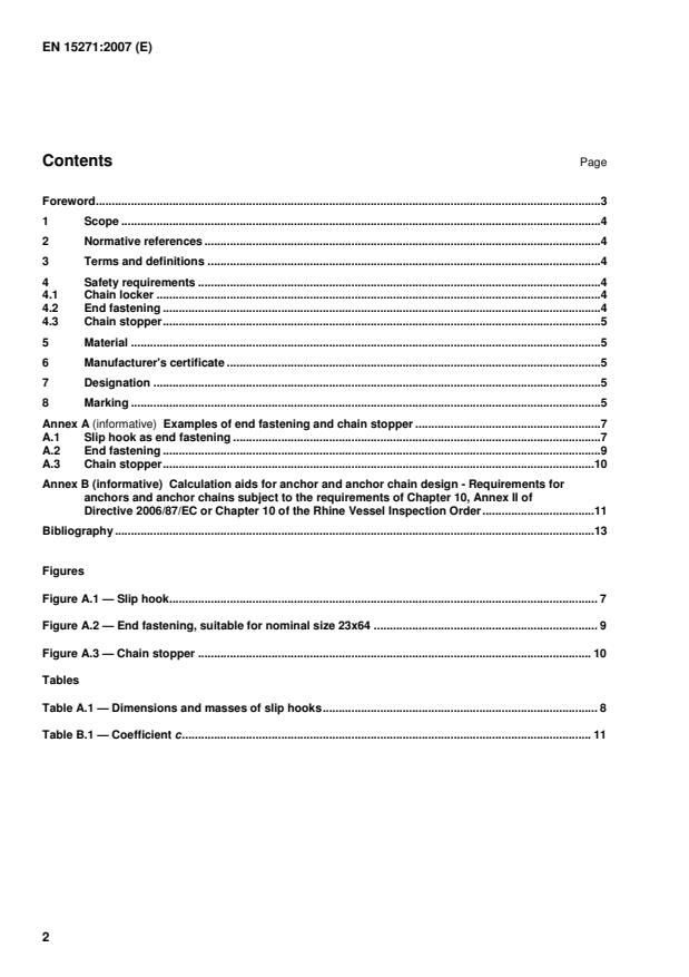 Keywords: EN 15271:2007, inland navigation vessels, studless anchor chain, anchor equipment, chain locker, end fastening, chain stopper, anchor chain EN 14330, anchor design.