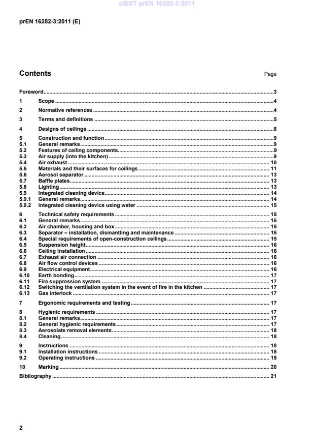 prEN 16282-3 is a draft published by the European Committee for Standardization (CEN). Its full title is "Equipment for commercial kitchens - Components for ventilation in commercial kitchens - Part 3: Kitchen ventilation ceilings - Design and safety requirements". This standard covers: This standard applies to kitchen ventilation ceilings (hereinafter called "ceilings") in kitchens and other companiesthe processing foodstuffs intended for commercial use from their nature and finish. It does not apply to household kitchens. This standard stipulates the requirements covering the construction and operation, including the technical safety, ergonomic and hygienic features and their testing. Unless otherwise specified, the requirements of this standard will be checked by way of inspection and/or measurement. Additional or alternative national regulations on installation, appliance requirements and inspection, maintenance, operation have to be complied with.